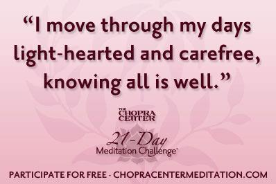 Monday was to mark the official completion of the Chopra Center 21-Day Meditation Challenge™, Creating Abundance, but then Deepak threw in a cheeky extra bonus session (thank you!), so that brought me up to 22 days of meditation and reflection using this wonderful, free forum. I am a little sad that it has come to an end and I am very tempted to buy the downloadable program… and, in fact, the whole Happiness Trilogy pack looks very tempting! Amidst all the action of Project Pinterest, weeks 7 & 8, I find myself grateful that it will be another week until the last of the 21-Day Challenge sessions is removed from the Chopra Center site. In the meantime, I continue to revisit sessions I have completed already. I use them sometimes to help me sleep at night and other times as a positive way to start my day. A 15 minute daily investment in oneself is not a tall order… and it seems to great pay dividends. I hope that in some way I am able to keep up the practice far beyond the Creating Abundance challenge.