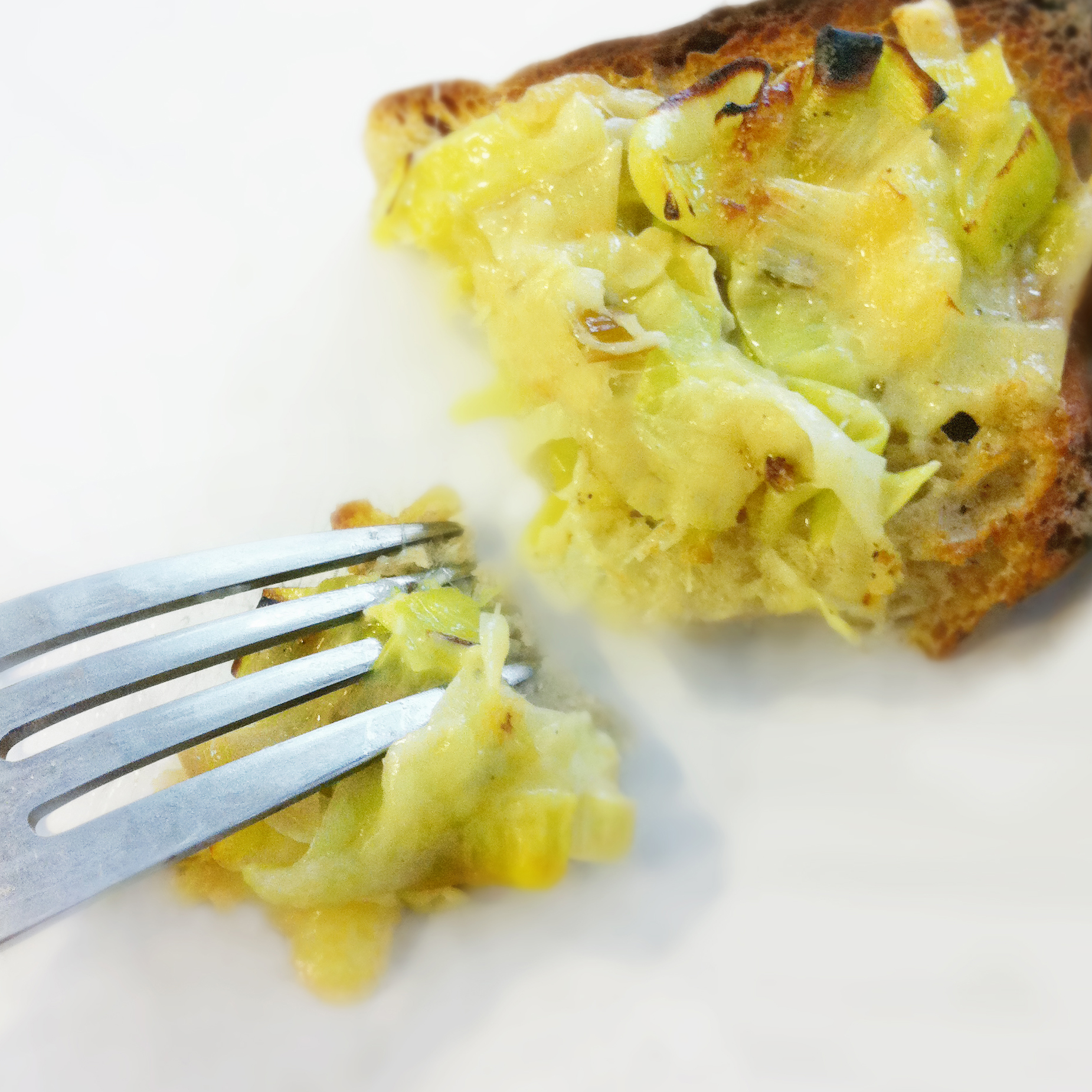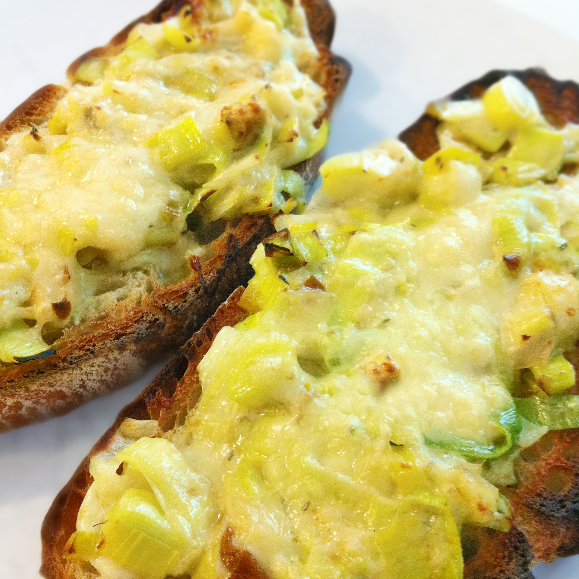 - Preheat the grill. Lightly toast the bread, top with a thick layer of the leek and cheese mixture, and grill until bubbling and golden. Enjoy!