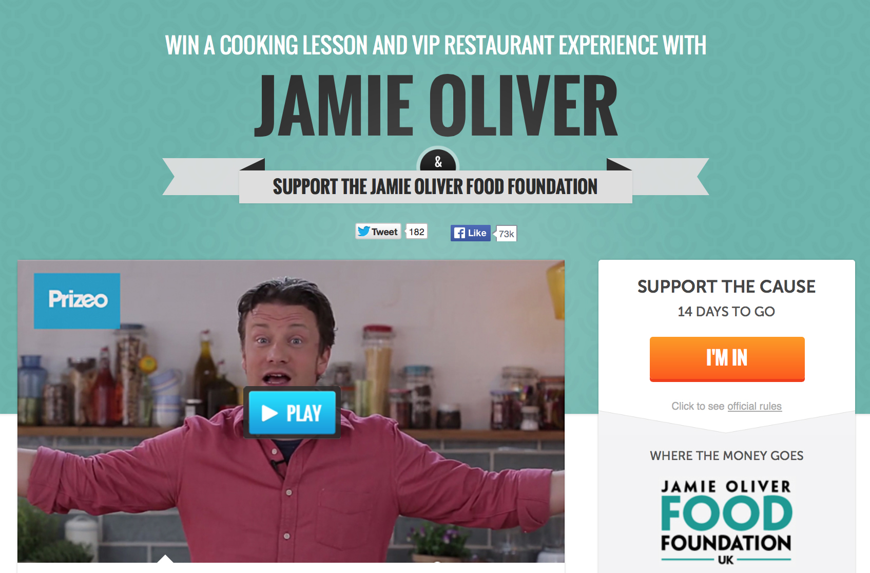 This year, via Prizeo, contributors to the cause have the opportunity to win a cooking lesson with Jamie himself and a VIP restaurant experience in London! You’d be nutty not to enter 😉