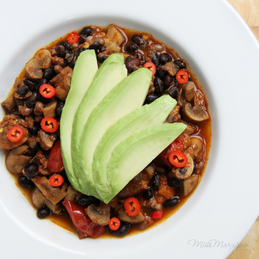 - Mushroom and Black Bean Chilli- my vegan version… with extra chilli