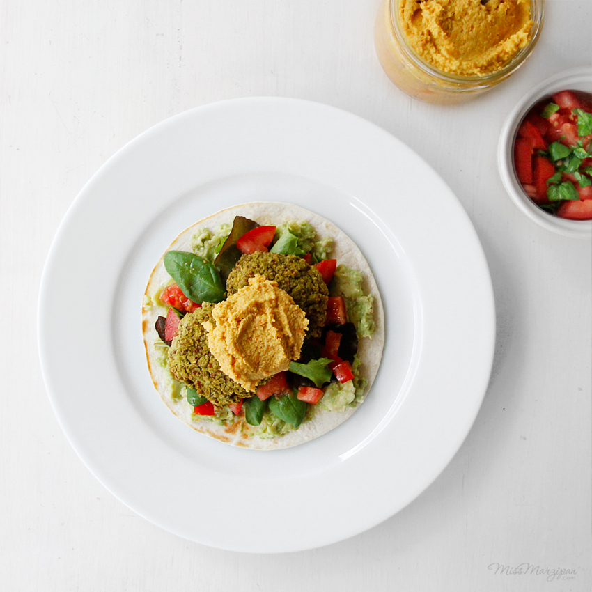 - Quinoa Falafel Plate with homemade IQS Carrot Hummus