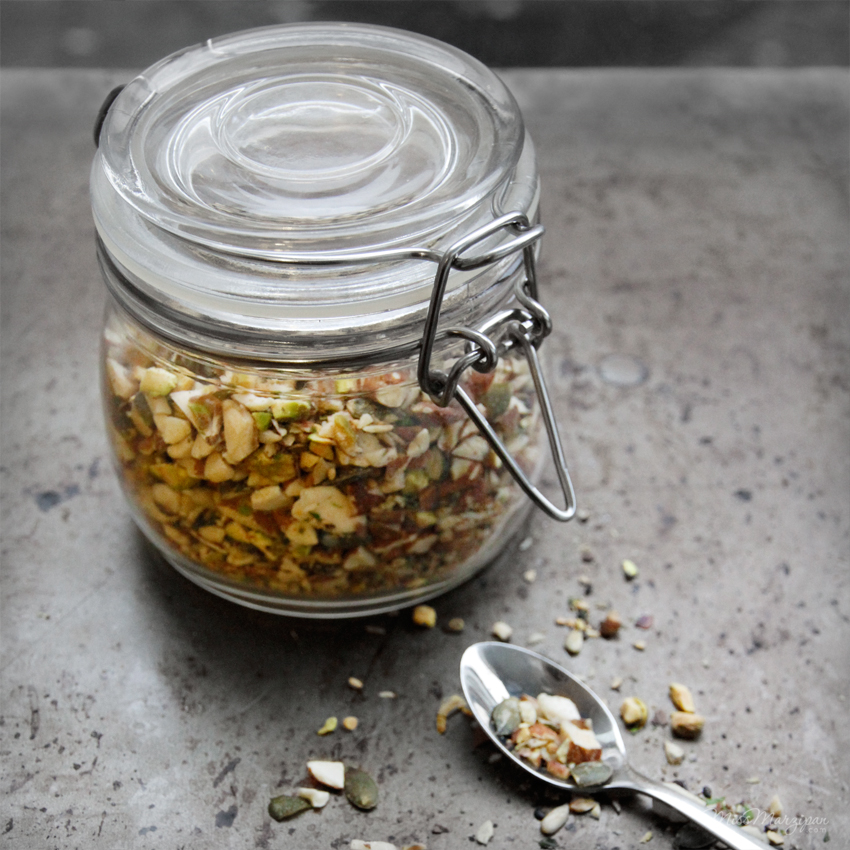 - Easy Nut & Seed Pan Toasted Dukkah (a recipe by me, inspired by IQS and used to garnish my IQS Roasted Cauliflower + Chickpeas)