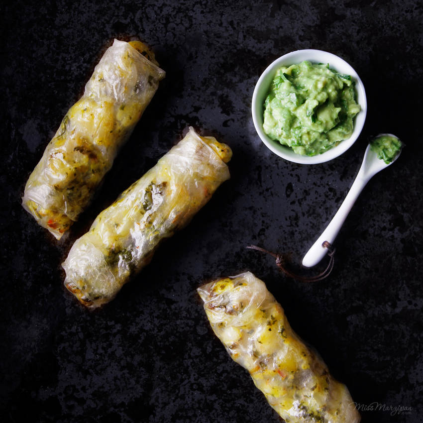 - Curried Vegetable Baked Spring Rolls (supposed to be empanadas in the original recipe)