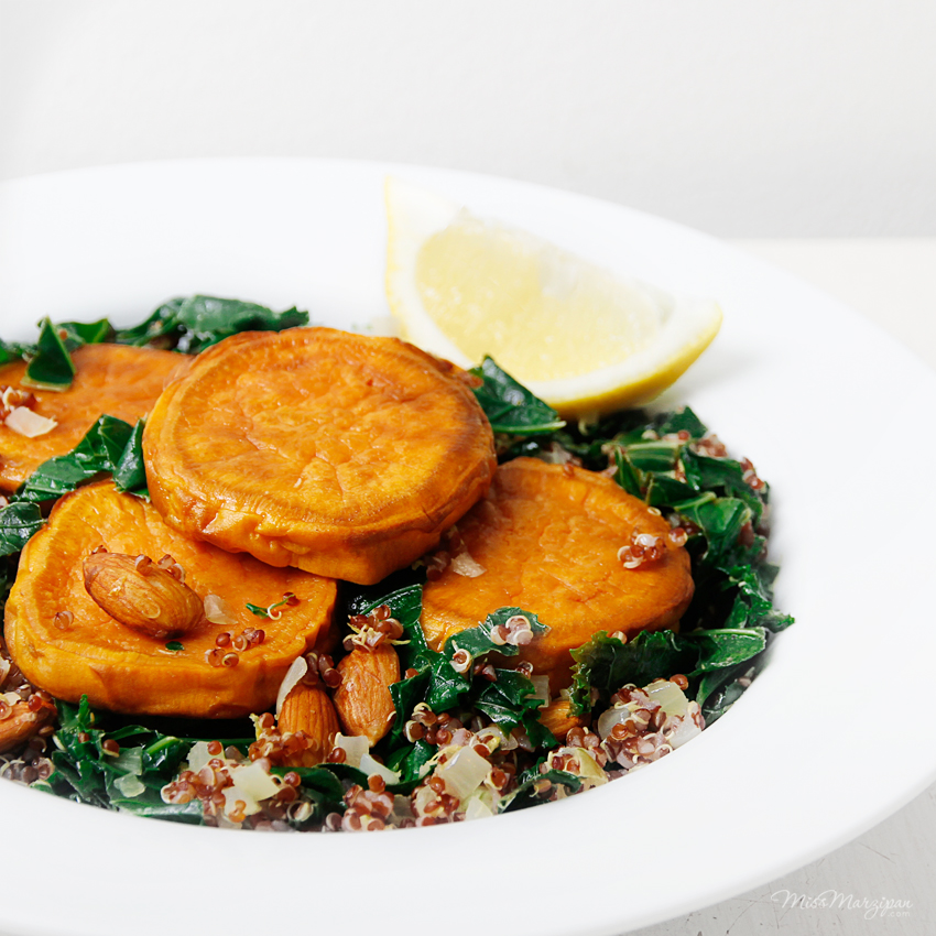- Ginger, Almond + Kale Quinoa with Sweet Potato Discs